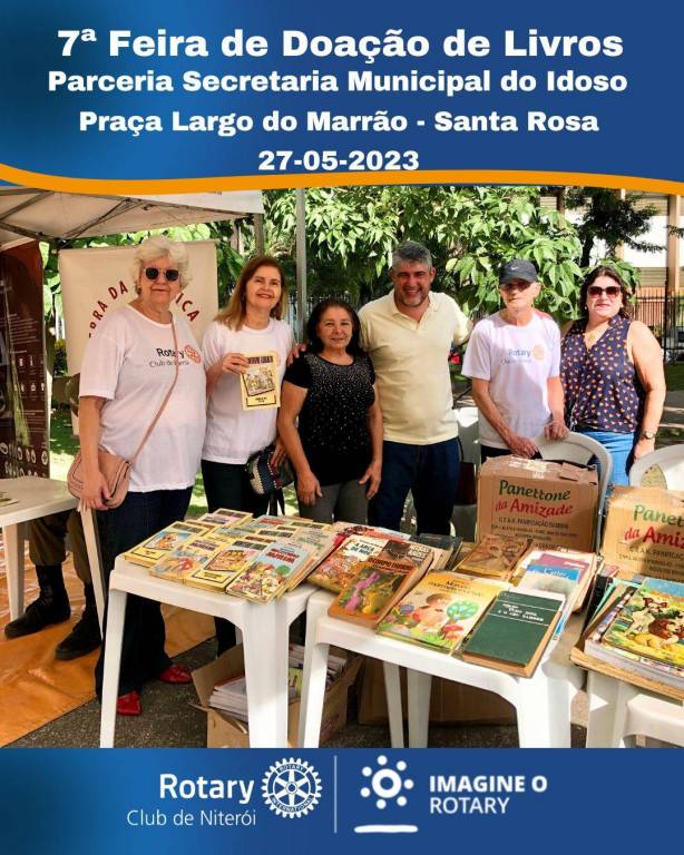 O Rotary Club de Niterói, realizou a 7ª Feira de Doação de Livros, a terceira do período 2022-23. Realizada no bairro de Santa Rosa com parceria da Secretaria Municipal do Isoso. Foram doados quase 400 livros. Foi um sucesso. Ficamos felizes em poder incentivar o hábito da leitura.