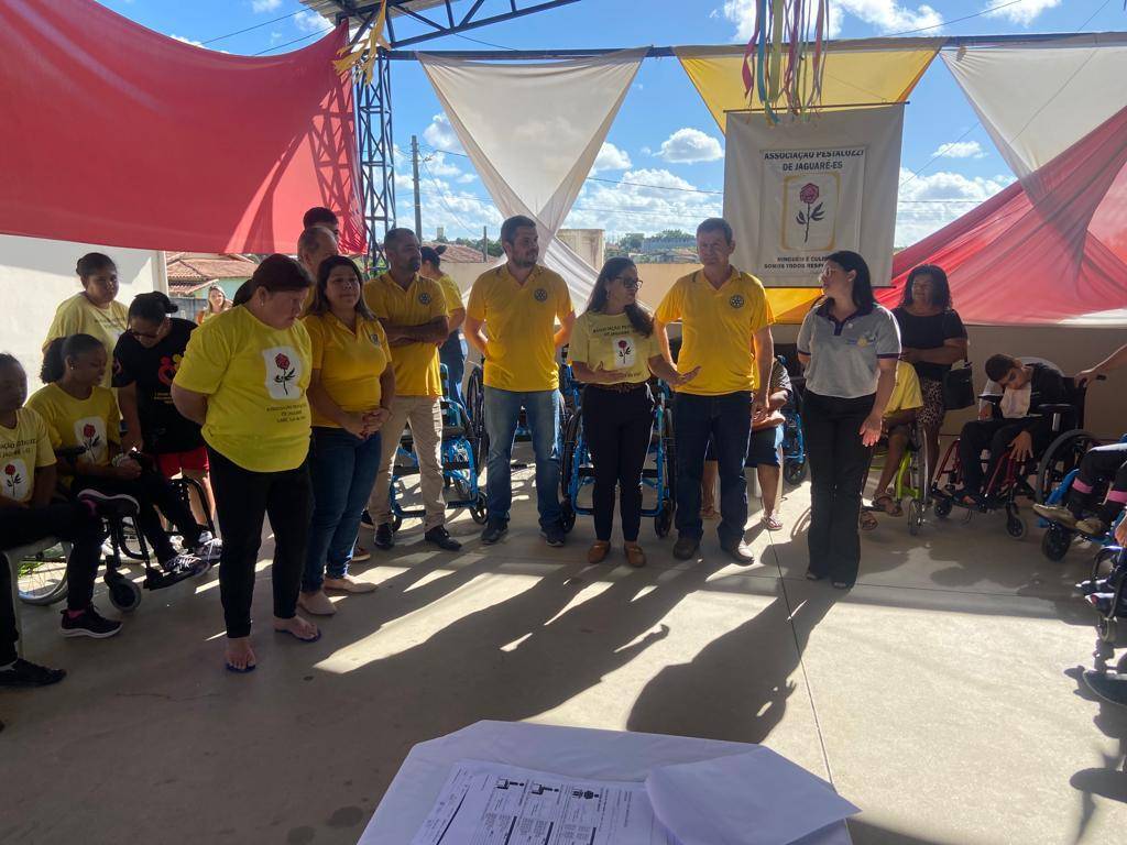 Na última sexta-feira (07/07) o Rotary Club de Jaguaré Centenário, realizou a entrega de 16 cadeiras de rodas para a Pestalozzi de Jaguaré. As cadeiras foram adiquiridas no Projeto Mobilidade Para Todos onde serão doadas um quantitativo de 41 cadeiras à comunidade local.
