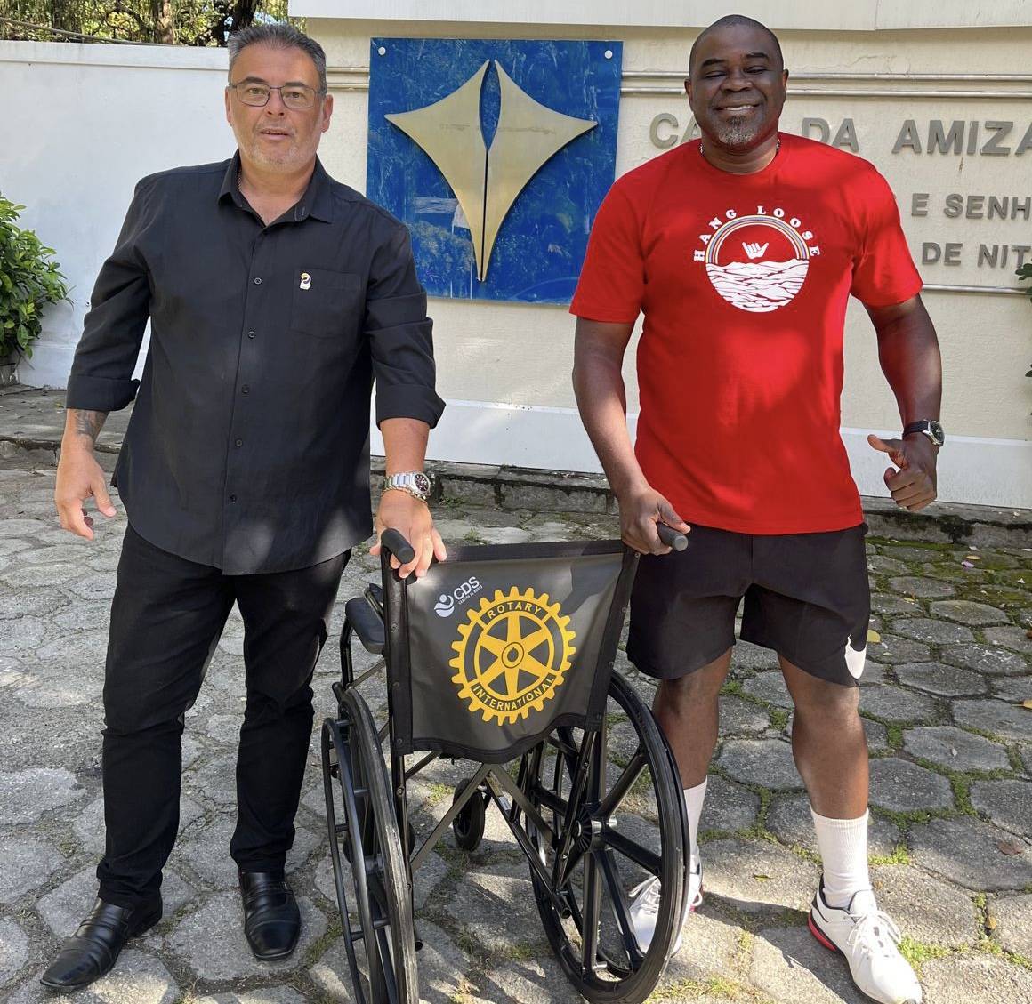 Foram doados para um deficiente carente com a ajuda também dos companheiros fraldas geriátricas,colchão e uma cama. Agradecemos ao nosso clube afilhado, RC de Niterói Norte, que doou a cadeira de rodas.