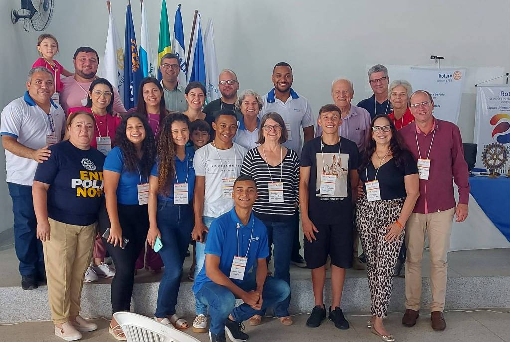 Nas fotos vemos os participantes presenciais do evento, Rotary Club de Porciúncula, Itaperuna, Venda Nova do Imigrante, Alegre e Vitória Praia do Canto, além do Rotaract e Interact de Porciúncula.