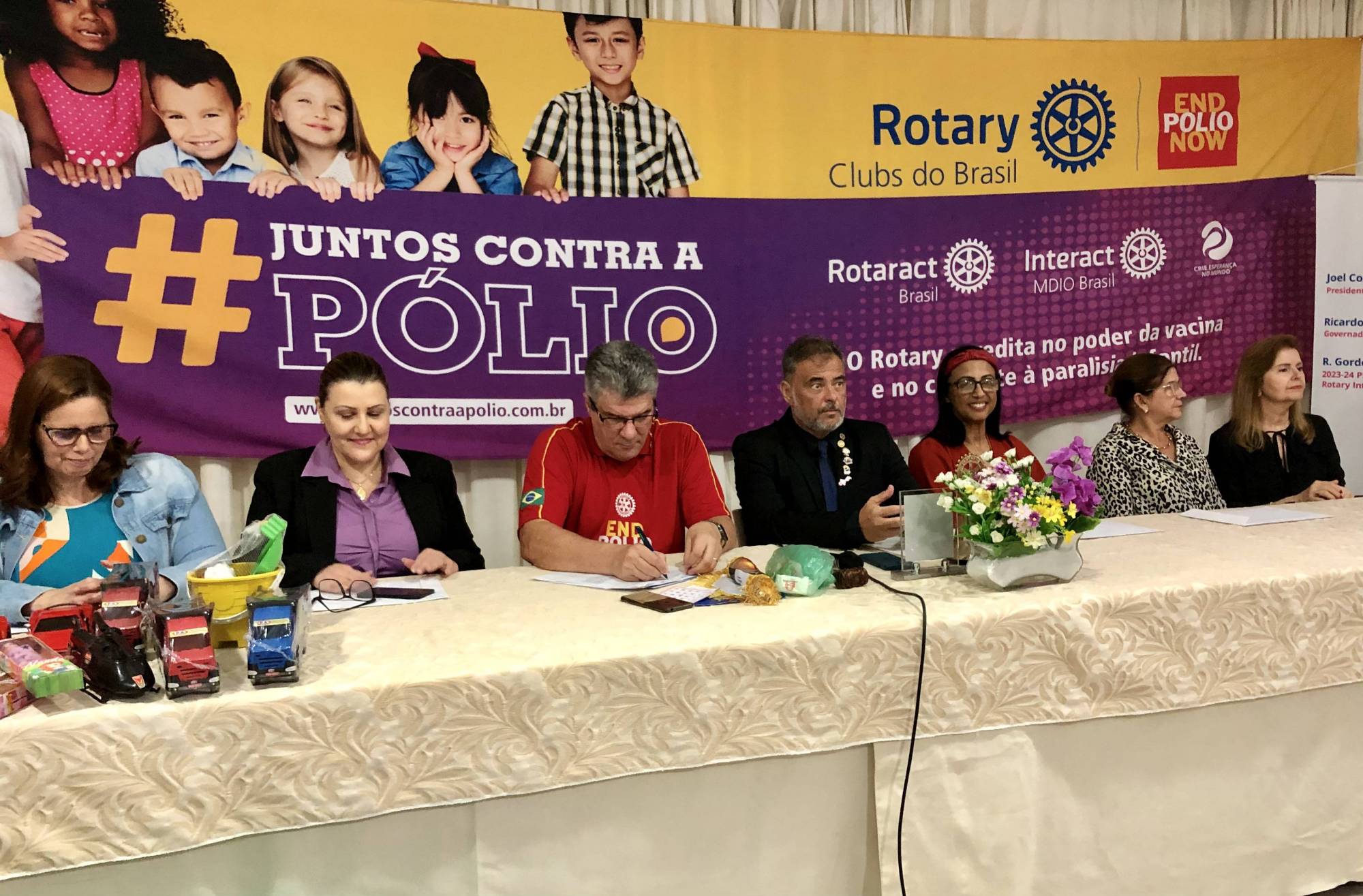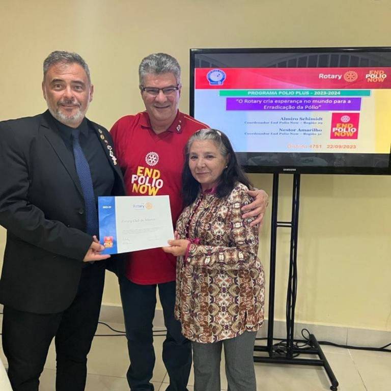 8ª Reunião Festiva com palestra e homenagens. O governador Ricardo Fonseca de Pinho realizou uma excelente palestra sobre a Erradicação da Pólio, fazendo um histórico do início da luta do rotary para erradicar a Polio no mundo. Homenagem às diretoras e professora do Colégio Estadual Fernando Magalhães, onde realizamos o RYLA e outros projetos também. Sorteio de duas cestas em benefício à Fundação Rotária-Pólio.