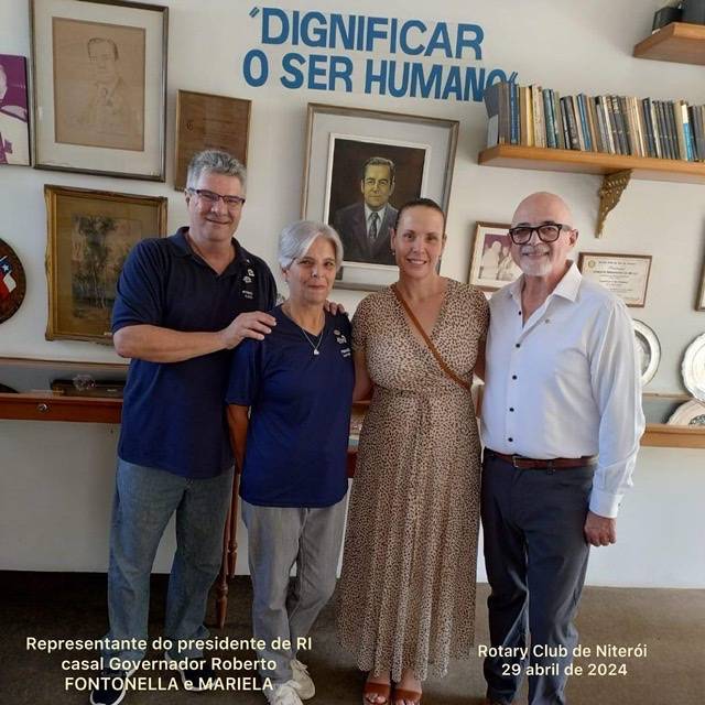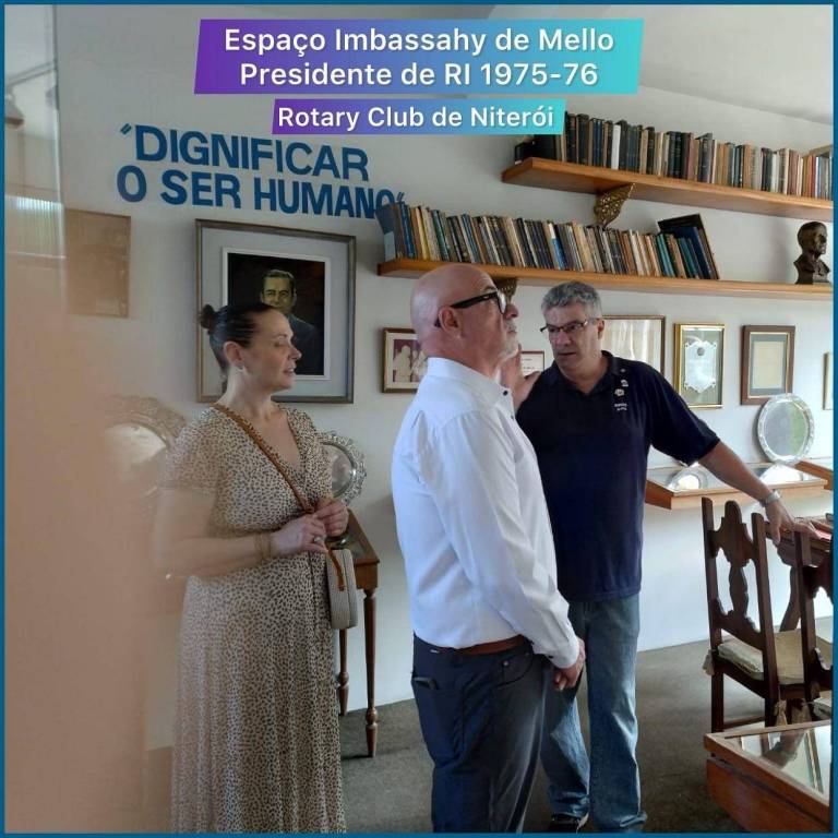 Representante do presidente de Rotary Internacional, casal GD Roberto Fontonella e Mariela Corradini, visitando o Espaço Imbassahy de Mello, nosso presidente de RI 1975-76, do Rotary Club de Niterói.