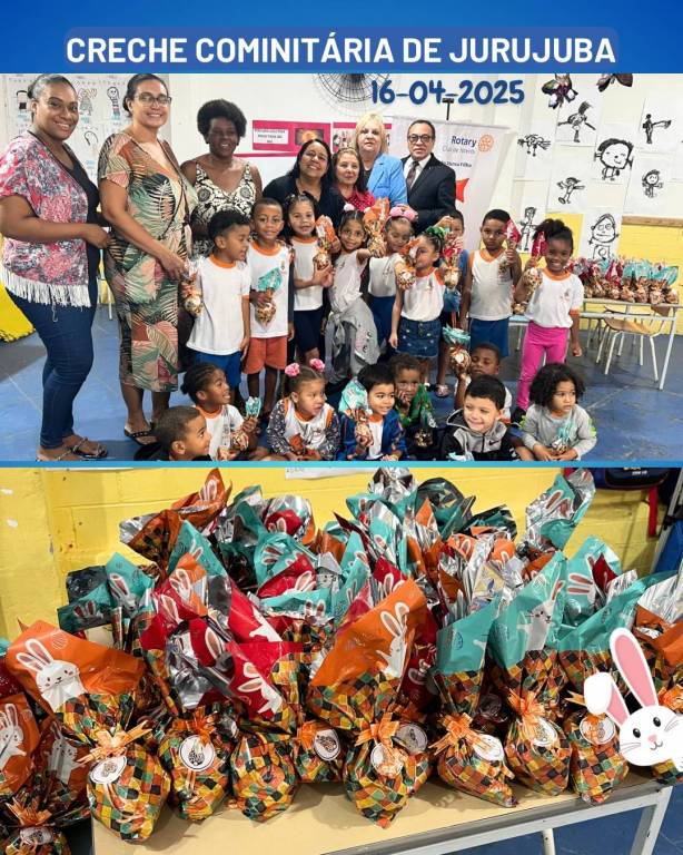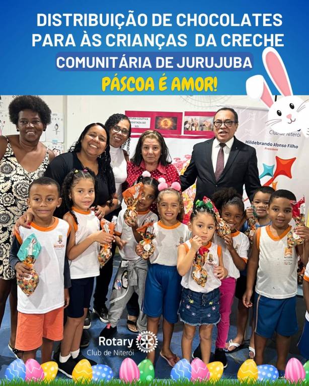 Dia 16 de abril, o Rotary Club de Niterói realizou a entrega de chocolates para as crianças das creches de Jurujuba e Ititioca, celebrando a Páscoa com muito carinho e solidariedade. A ação encheu os pequenos de alegria, revelada nos sorrisos e na empolgação de cada um ao receber seu bombom. Mais do que doces, foram distribuídos gestos de afeto e amor, valores que tornam a Páscoa ainda mais especial.