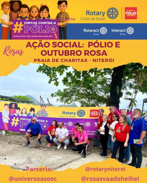 Fis 11 de outubro participamos de uma linda ação na Praia de Charitas, unindo conscientização, cuidado e solidariedade! Em parceria com @rosasaaheihei e @universoasoec, promovemos a divulgação do Outubro Rosa e a importância da vacinação para erradicação da poliomielite no mundo.
