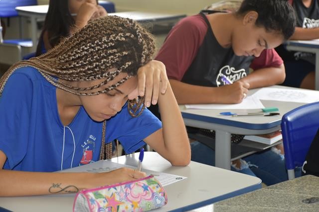 O tema da redação com os alunos foi " a influência da tecnologia nas brincadeiras infantis ".