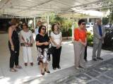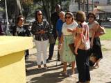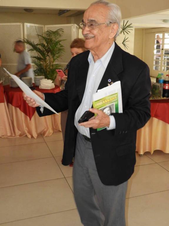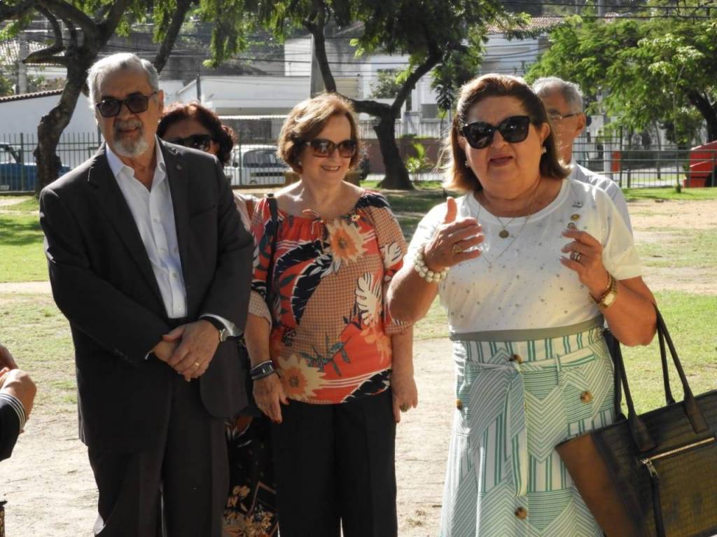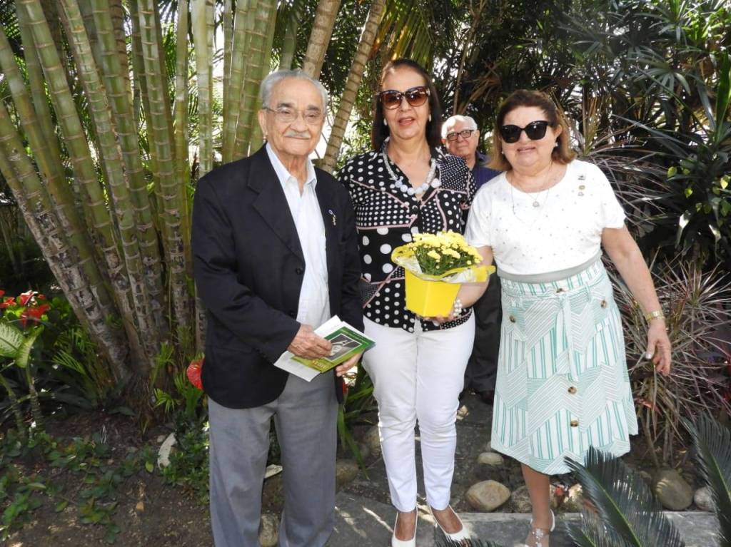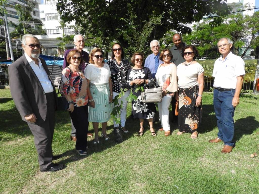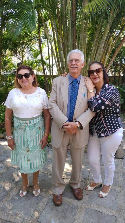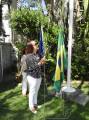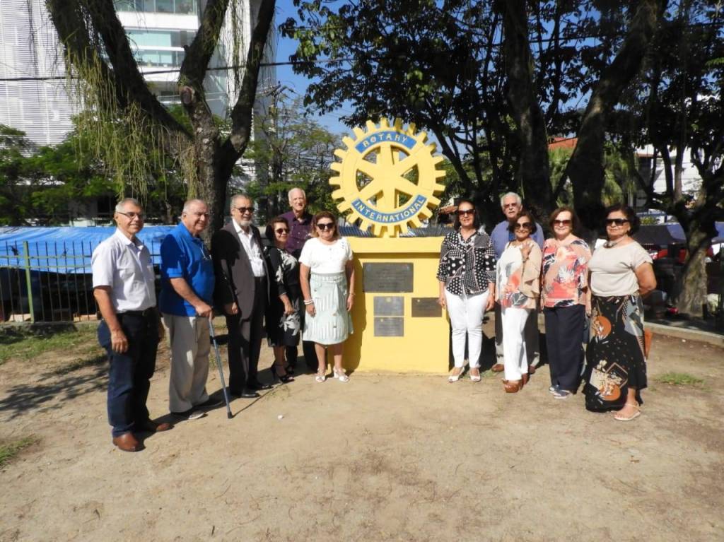 Todos acompanharam o hasteamento das bandeiras e a colocação de flores nos bustos de Paul Harris, Ernesto Imbassahy de Melo e Margarida Lima, junto à Representante Distrital das Casas da Amizade, Marlene Ribeiro.