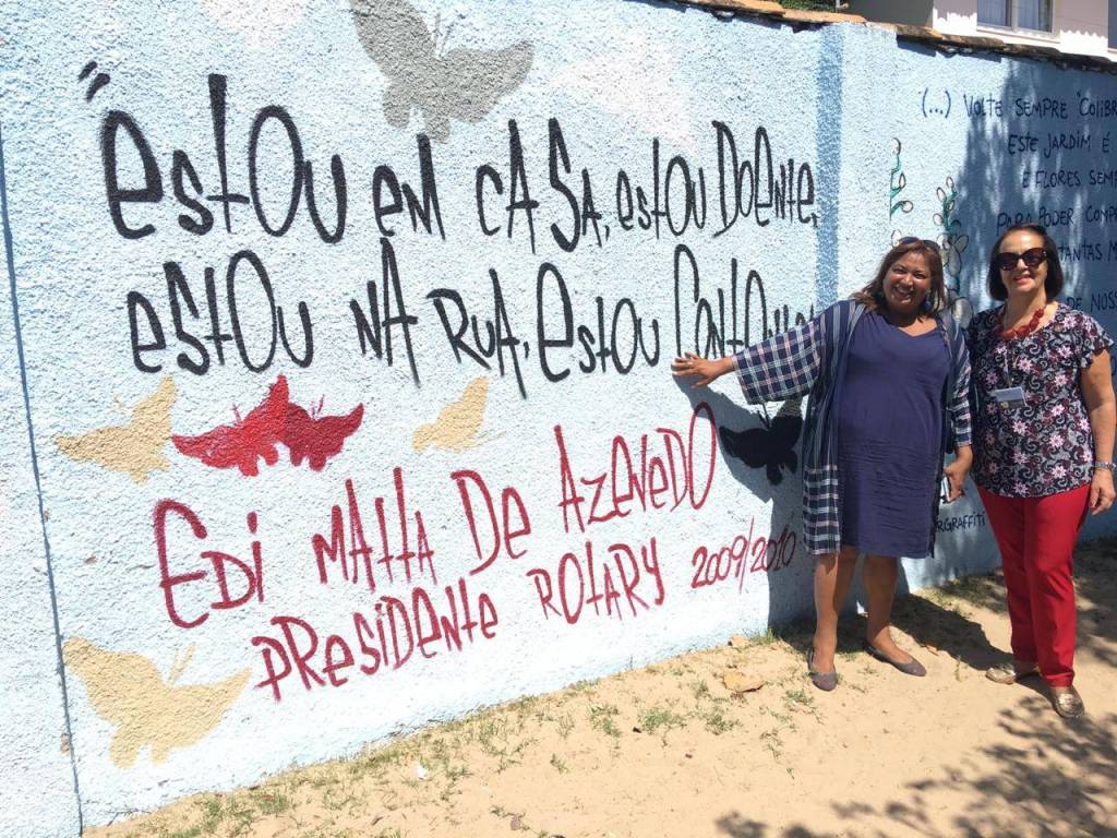 A presidente Sylvia Regina Azevedo Marconi e seus companheiros a receberam primeiramente no marco rotário e, em seguida, se dirigiram à ABEM (Amigas do Bem), em que voluntários realizam trabalho de reforço escolar para crianças de diversas faixas etárias no contra turno de suas escolas de origem, além de oferecimento de café da manhã e alimento espiritual por meio do diálogo e gratidão.