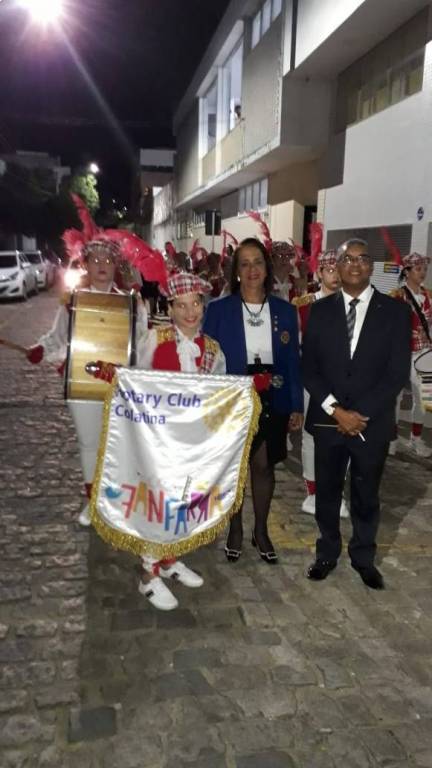 À noite, além da assembleia, ocorreu bela reunião festiva em que a Governadora foi recebida pela fanfarra cultural do clube, comandada pelo maestro João Jorge dos Santos Azevedo. Na ocasião, também foram homenageadas as escolas participantes do projeto Lacre Solidário. Ocorreu ainda a posse do Rotary Kids de Colatina (presidente Isadora), onde há que se destacar a perfeita condução das crianças por parte do clube. O vice-presidente João Vitor cantou uma linda música para a Governadora.