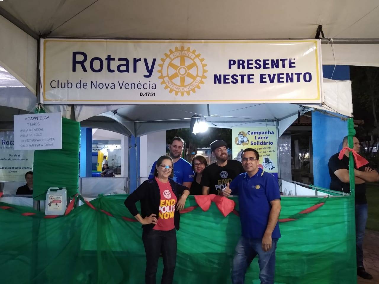O Rotary Club de Nova Venécia participou da Cappitella, festa italiana da cidade, com uma tenda vendendo água, suco e refrigerantes e, consequentemente, divulgando os trabalhos da organização.