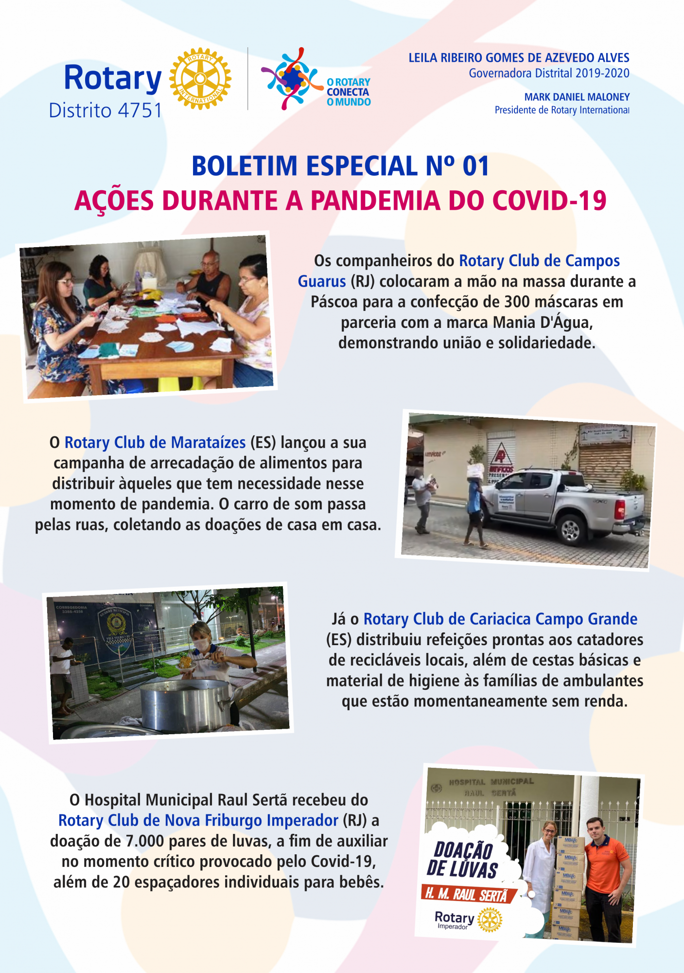 Os clubes do Distrito 4751 de Rotary International (RJ e ES) estão trabalhando, dentro de suas possibilidades, em ações diversificadas de combate ao novo coronavírus.
