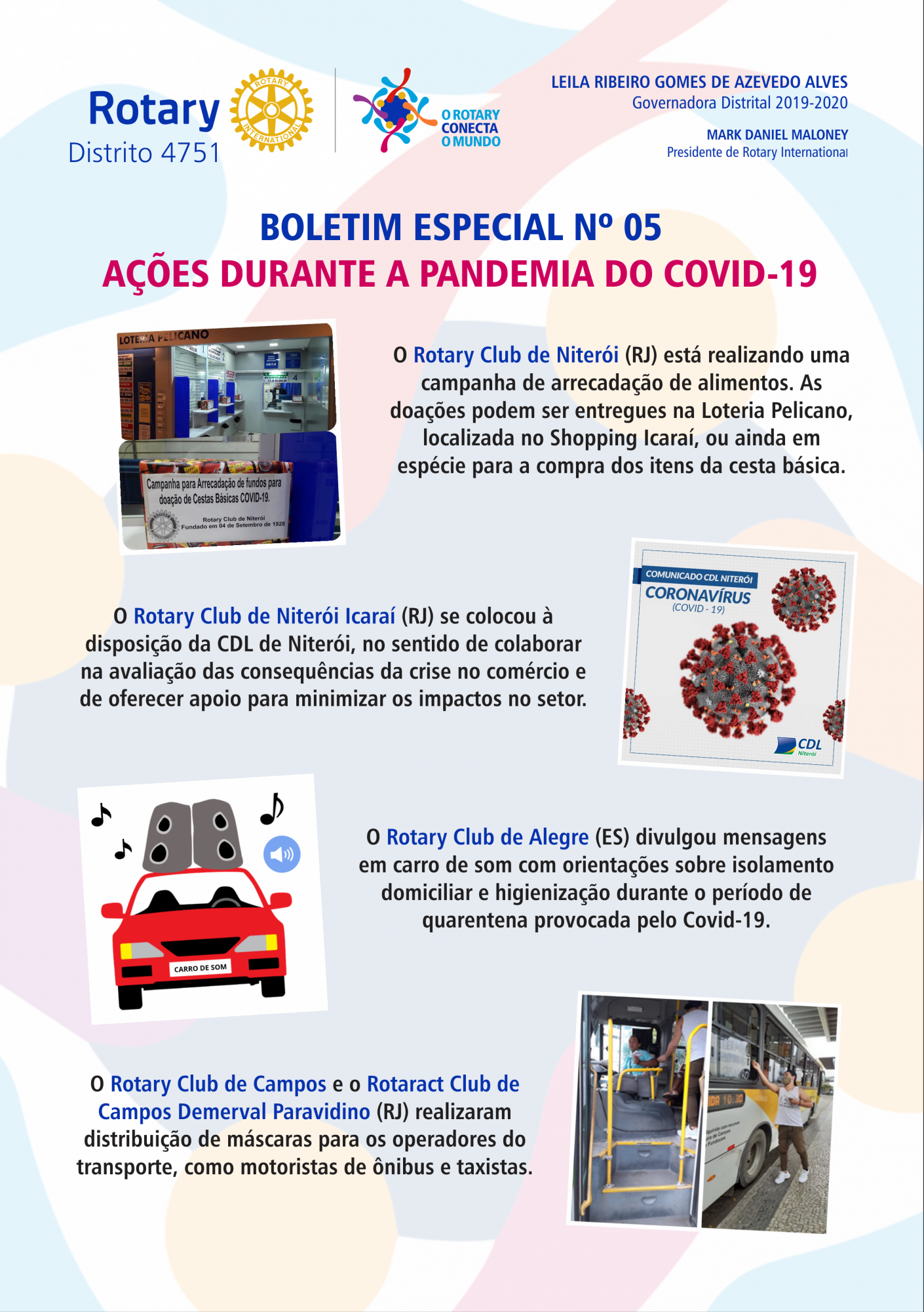 Os clubes do Distrito 4751 de Rotary International (parte do RJ e ES) estão trabalhando, dentro de suas possibilidades, em ações diversificadas de combate ao novo coronavírus.