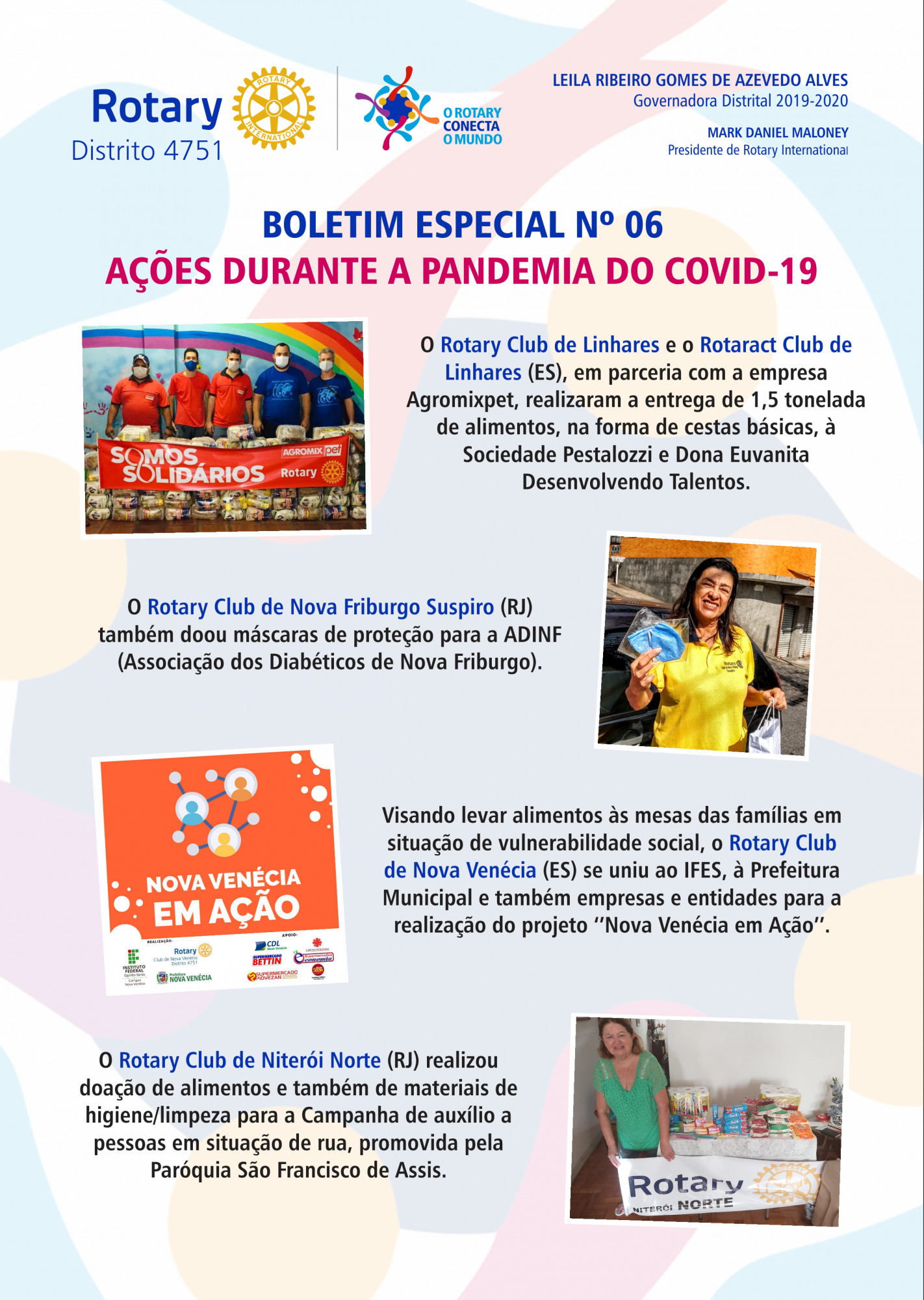 Os clubes do Distrito 4751 de Rotary International (parte do RJ e ES) estão trabalhando, dentro de suas possibilidades, em ações diversificadas de combate ao novo coronavírus.