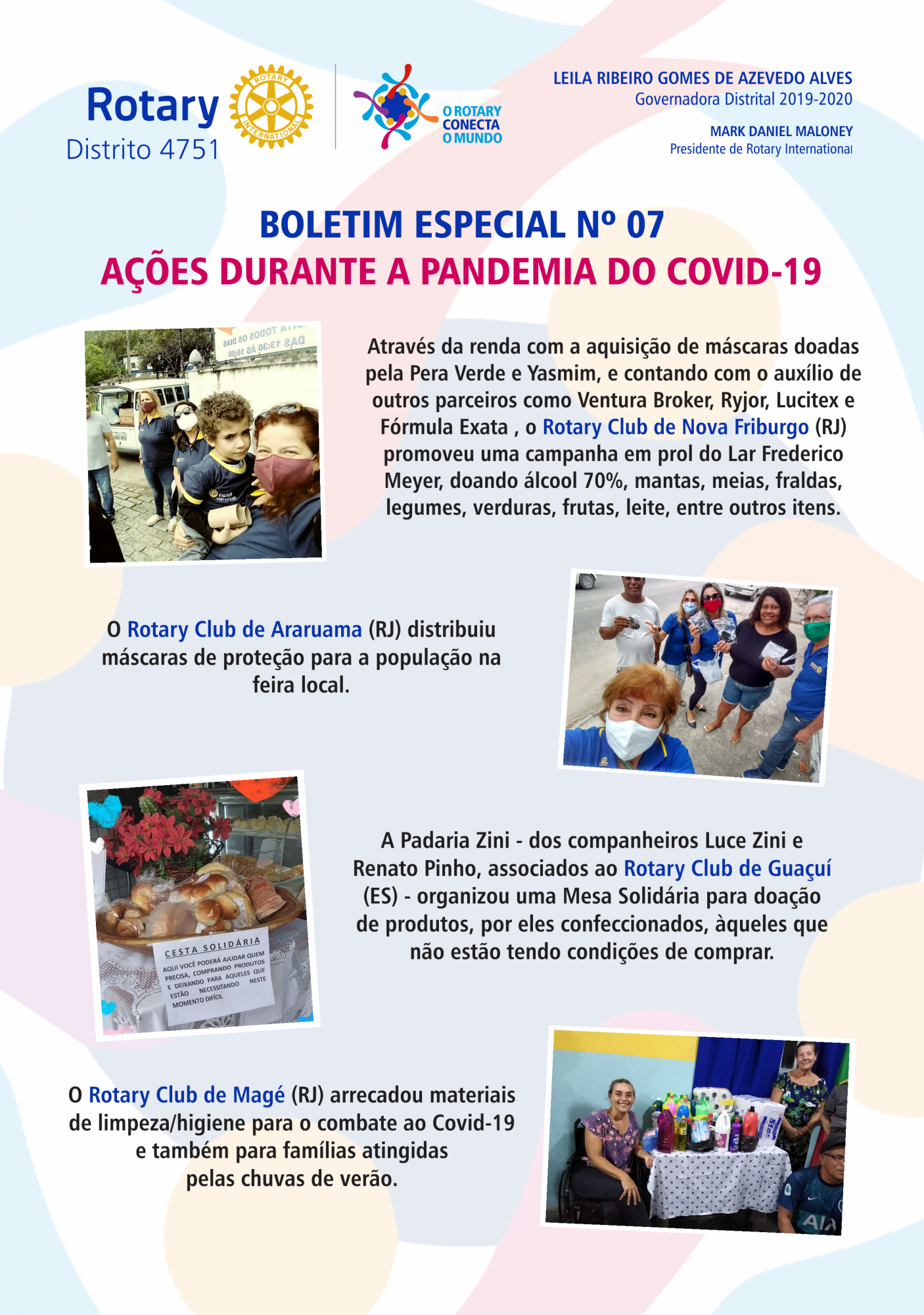 Os clubes do Distrito 4751 de Rotary International (parte do RJ e ES) estão trabalhando, dentro de suas possibilidades, em ações diversificadas de combate ao novo coronavírus.
