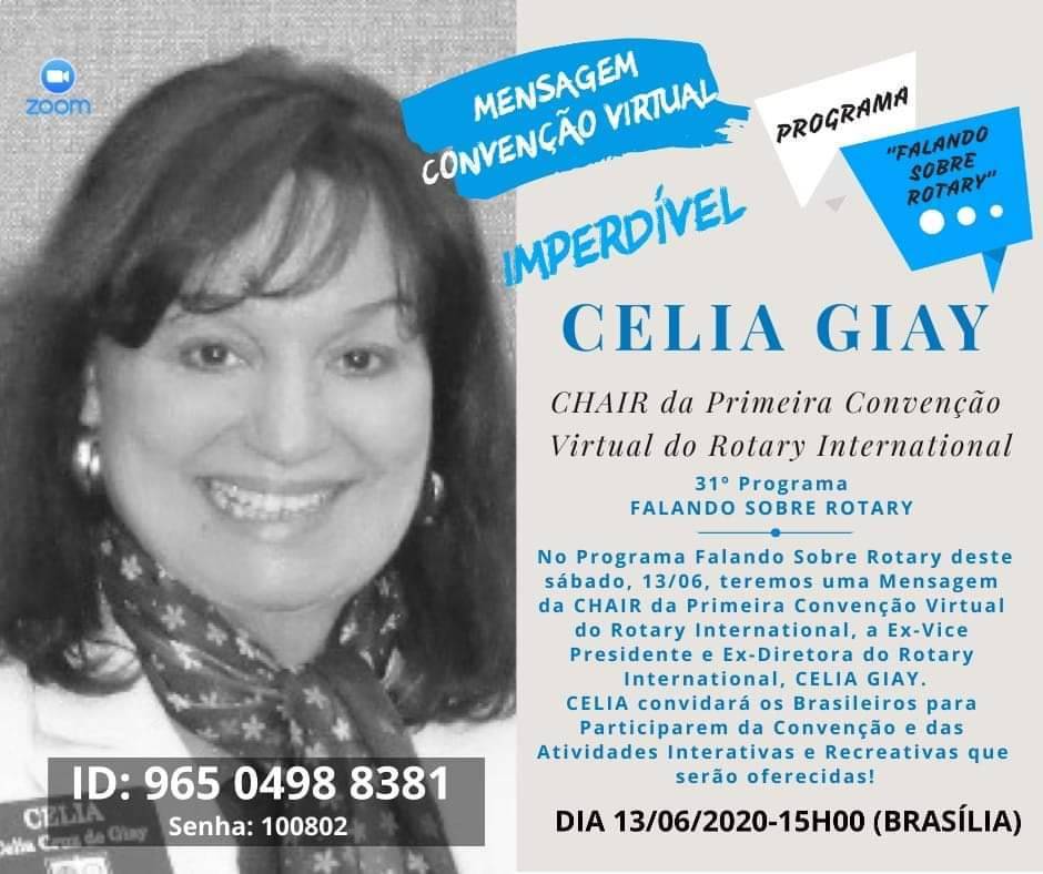 Convite live Live com CELIA GIAY Chair Convenção Virtual do ROTARY INTERNATIONAL, PROGRAMA