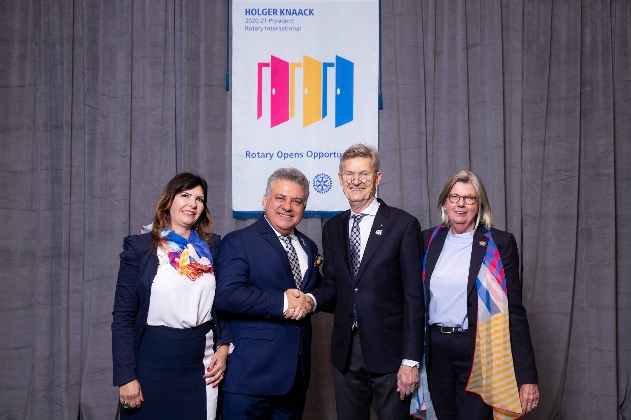 Estimados irmãos e irmãs em Rotary! O melhor momento de nossas vidas se inicia neste ano rotário repleto de surpresas e desafios. Estamos radiantes de alegria, motivação e energias positivas para juntos mostrarmos como o sangue de um rotariano pulsa quando está envolvido e engajado pela humanidade. Neste momento de plena luz, onde nos unimos com um só objetivo e uma só emoção, invocamos as forças do nosso Pai Celestial pedindo as bençãos àqueles que se dedicam ao bem. Chegamos juntos, estaremos juntos, chegaremos juntos! Sejam todos muito bem-vindos ao melhor ano de suas vidas! Abraços fraternos do Adauto e da Giselli.