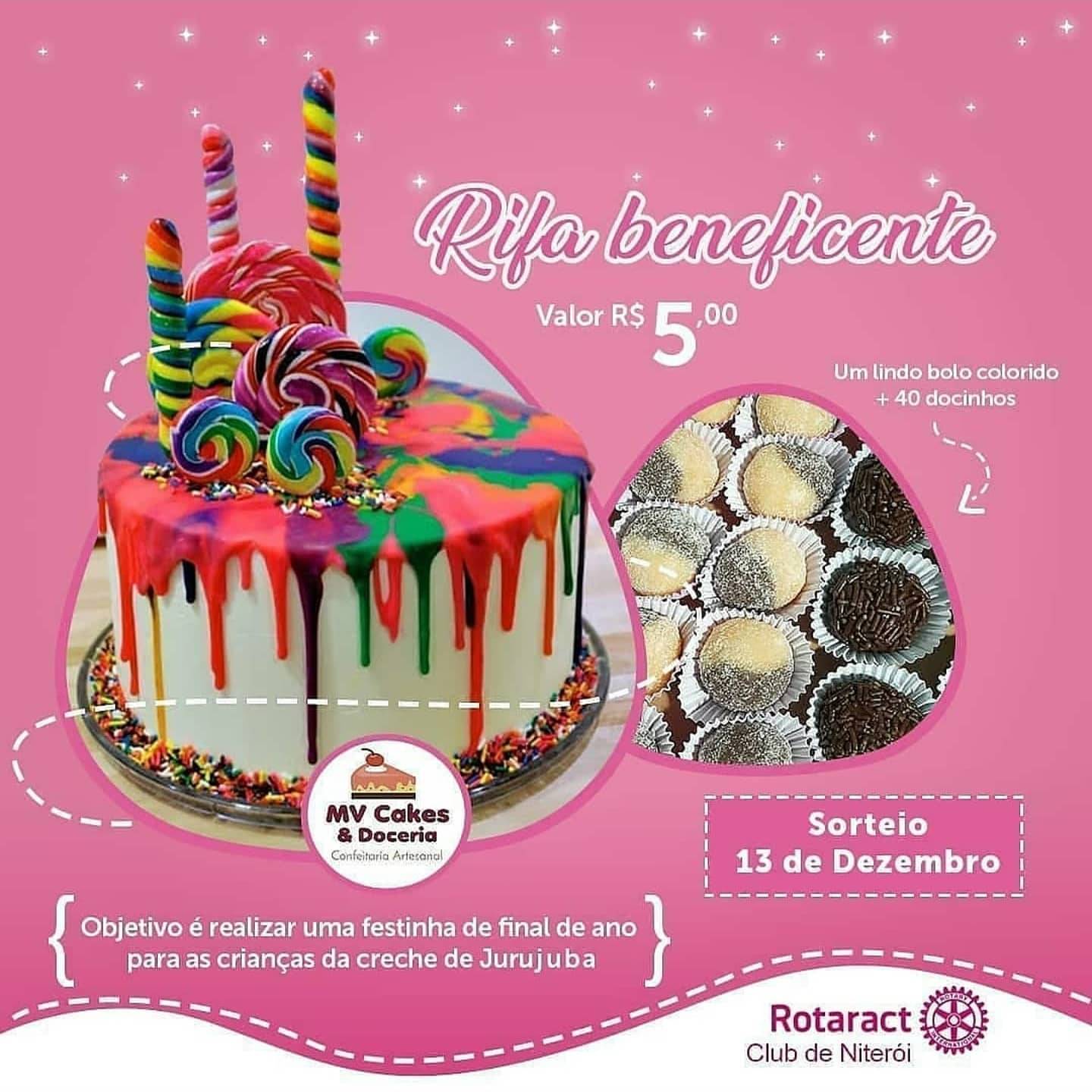 O Rotaract Club de Niterói realizou uma rifa para a compra dos brinquedos, balas e doces para o Natal das crianças. Foi um sucesso a venda das rifas. O ganhador foi o querido companheiro João Carlos de Carvalho. Parabéns e gratidão a todos que colaboraram.