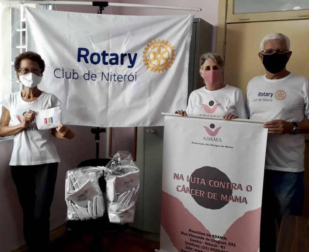 O Rotary Club de Niterói doou 40 necessaires contendo máscara, álcool gel e maquiagem facial,para mulheres que buscam apoio na ADAMA- Associação dos Amigos da Mama de Niterói, cujo propósito é contribuir para recuperação da força e auto estima após o diagnóstico do câncer de mama. Os kits foram confeccionados para o Dia das Mães.