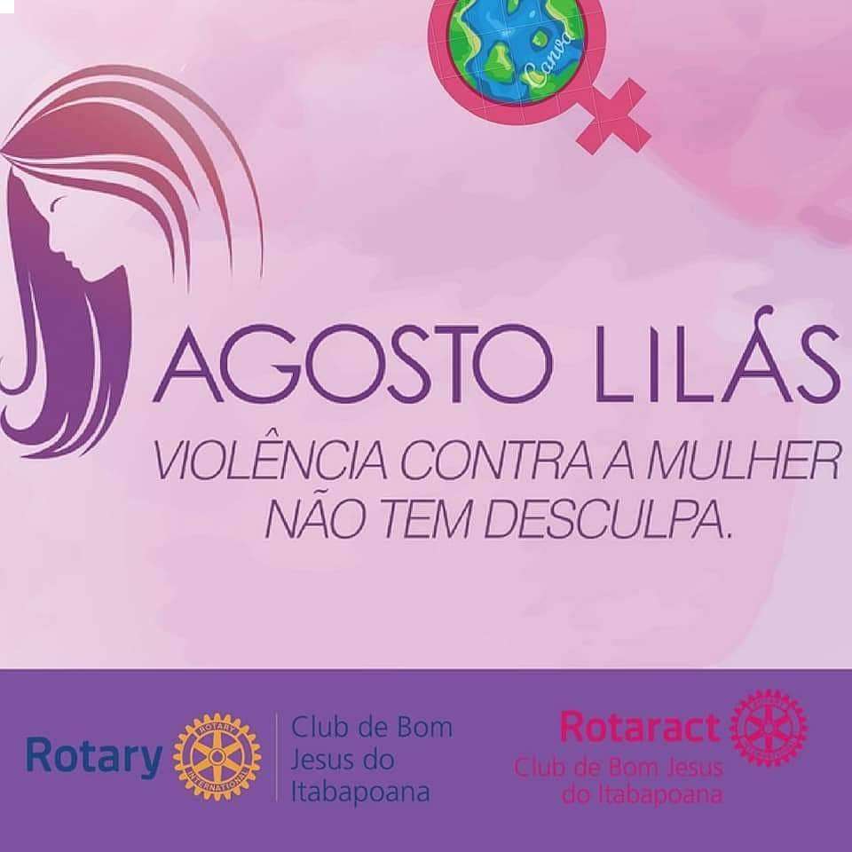 No mês em que se comemora 12 anos da Lei Maria da Penha o Rotary Club e o Rotaract Club de Bom Jesus do Itabapoana se solidarizam na campanha Agosto Lilás com o objetivo de promover o conhecimento da Lei Maria da Penha chamando a atenção para a necessidade de denunciar casos de violência doméstica e familiar contra a mulher.