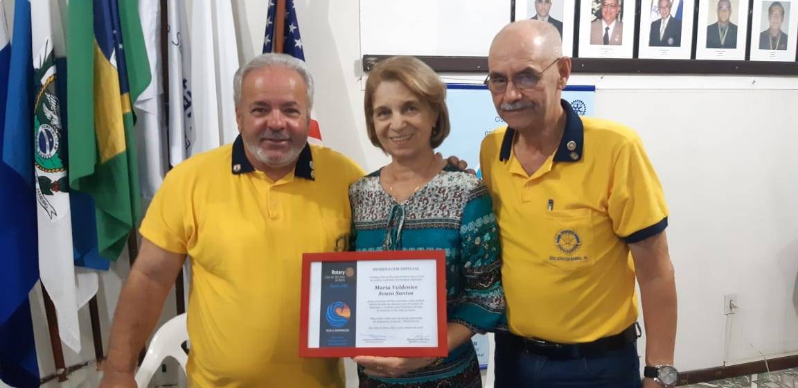 Durante a reunião festiva, foi prestada Homenagem Especial à companheira Maria Valdenice Souza Santos, por seus relevantes serviços prestados ao clube como vereadora e também como presidente da Casa da Amizade (por sete gestões). No ano de 1991, a companheira Maria Valdenice, então vereadora, apresentou projeto de lei sugerindo a doação ao Rotary do terreno onde hoje se localiza a Casa da Amizade. A Lei nº 32/91 foi aprovada pela Câmara Municipal de São João da Barra e sancionada pelo prefeito Genecy Mendonça (Dodozinho) em 18 de dezembro de 1991.