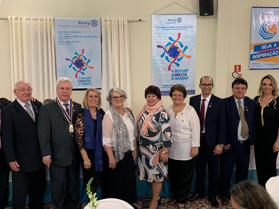 A Governadora Distrital Leila Alves Ribeiro iniciou sua caminhada oficial de visitas aos clubes de Rotary do Distrito 4751. A primeira visita oficial foi ao Rotary Club de Bom Jesus do Itabapoana, que é presidido pelo rotariano Davson de Oliveira Ney, médico cardiologista. A Governadora iniciou com a foto oficial junto ao marco rotário. Após seguiu em caravana ao Projeto Produção de Mudas, em parceria com o Instituto Federal Fluminense e o clube de Bom Jesus. Na oportunidade a comitiva se reuniu com a Direção do IFF para traçar novos projetos para 2019 e 2020 em parceria com o Rotary Club e o Distrito 4751. Após, o almoço, foram recepcionados pelo Prefeito Roberto Salim e seu staff de governança. Com o Decreto de Hóspede Oficial do Município, a Governadora Leila compareceu ao Hospital São Vicente de Paulo e verificou as obras de ampliação e melhorias que vêm sendo desenvolvidas pela Direção do Hospital, da qual fazem parte atualmente dois associados do Rotary Club, Roney Correa Ribeiro, da Nazul Enxovais e o próprio Dr Davson. Na oportunidade, a Governadora Leila, rotarianos e funcionários inauguraram o Projeto Geladeira Literária, do Rotary Club de Bom Jesus, com a parceria do vereador Raphael do Ralph. Já no enterdecer, compareceram na sede do clube para a Assembléia com a Governadora, oportunidade na qual a representante do Rotary Internacional traçou suas metas e desejos como Governadora para o Distrito 4751. Ao final da noite do dia da visita oficial, o Rotary Club ofereceu um jantar de boas vindas, com a cerimônia de posse de sua nova diretoria para o ano rotário de 2019-2020 com o Lema O Rotary Conecta o Mundo. Estiveram presentes 100 pessoas que, ao som do hino do Rotary, encerraram as comemorações, festividades e honrarias do maravilhoso dia de visita oficial da Governadora Leila no Rotary Club de Bom Jesus do Itabapoana.