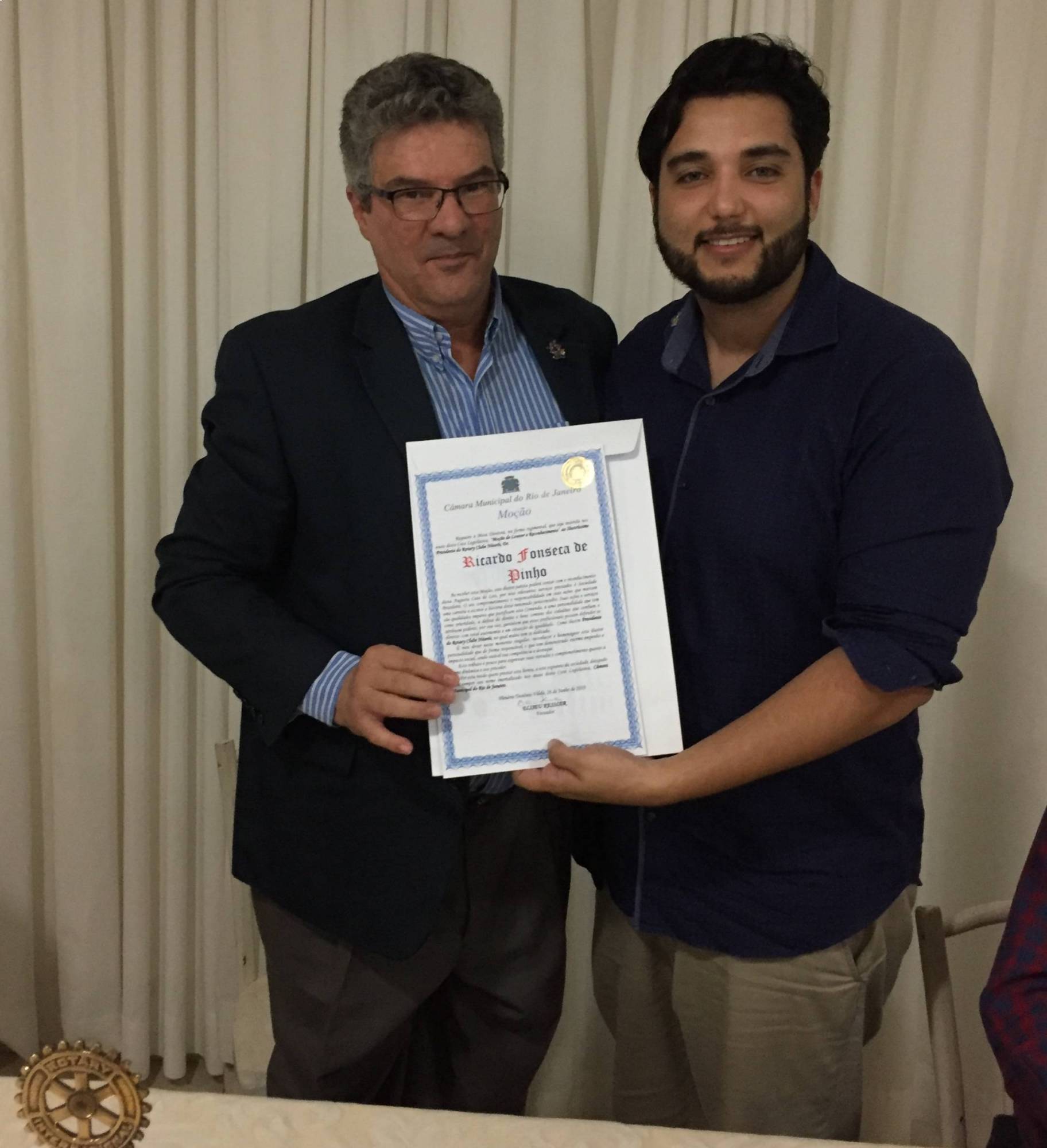 Presidente do RC de Niterói,Ricardo Pinho recebe Moção da Câmara Municipal do Rio de Janeiro