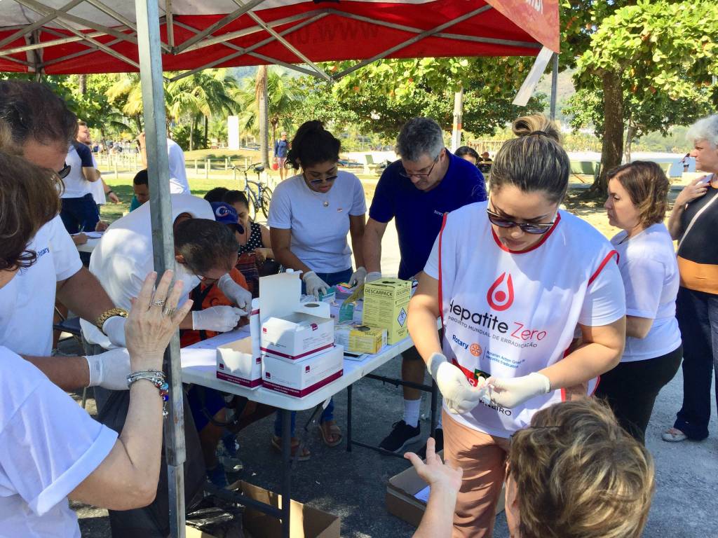 Os companheiros do Rotary Club de Niterói e do Rotaract, unidos na campanha de erradicação da Hepatite C. Foram realizados 150 testes e felizmente apenas um deu positivo. Parabéns a todos os Rotary Clubes e Rotaract Clubes que participaram desta campanha.