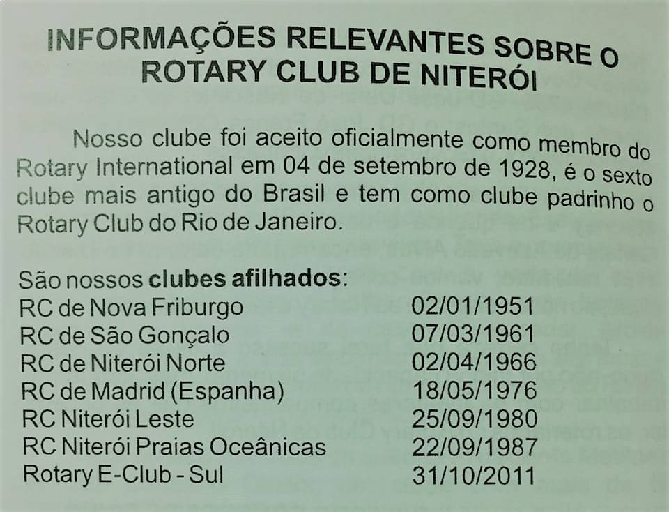 O Rotary Club de Niterói Norte homenageou o RC de Niterói, seu clube padrinho. Agradecemos a querida presidente Zeneida e a todos os companheiros pela significativa homenagem! O Rotary Club de Niterói completa hoje (04/09/2019), 91 anos de muito companheirismo, trabalho e doação ao próximo. Que continuemos sendo a inspiração para fortalecer cada vez mais as maneiras pelas quais o Rotary Conecta o Mundo.