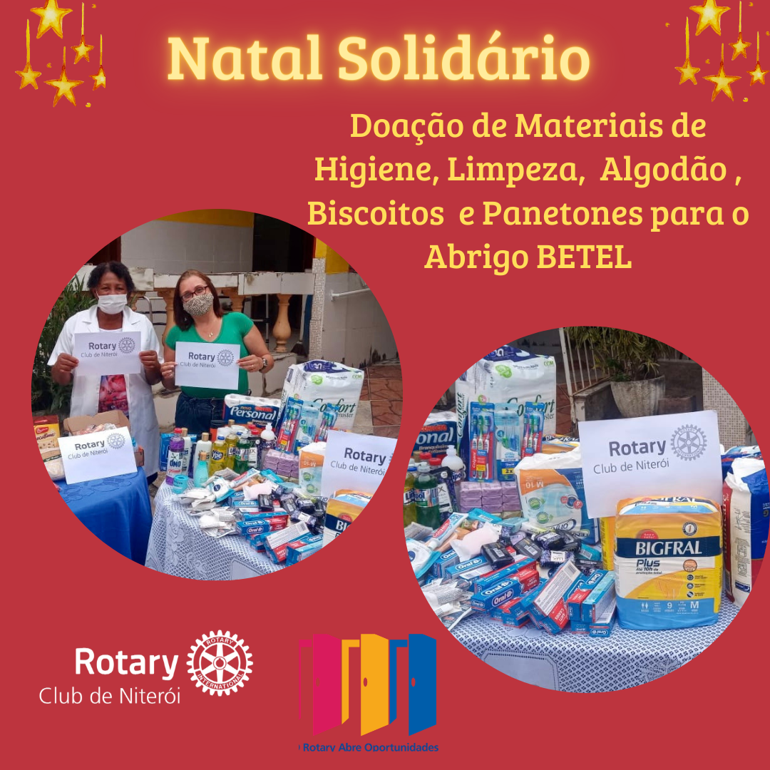 Doações para o Abrigo BETEL de materiais de limpeza, higiene, biscoitos e panetones. RC de Niterói em ação.